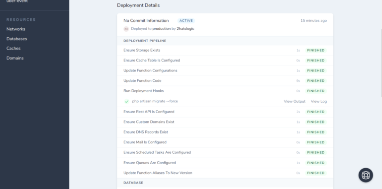 This will generate the deployment for the production environment. You can view the deployment details from the Vapor UI like below.