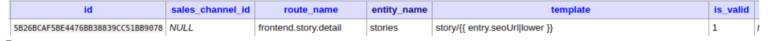 |   1 2 3 4 5 6 7 8 9 10 11 12 13  |  /**  * Insert y$connection->executeStatement('            INSERT INTO `seo_url_template` (`id`, `sales_channel_id`, `route_name`, `entity_name`, `template`, `is_valid`, `custom_fields`, `created_at`, `updated_at`)            VALUES (:id, NULL, :routeName, :entityName, :template, 1, NULL, :createdAt, NULL);        ', [            'id' => Uuid::randomBytes(),            'routeName' => 'frontend.story.detail',            'entityName' => 'stories',            'template' => 'story/{{ entry.seoUrl|lower }}',            'createdAt' => (new \DateTime())->format(Defaults::STORAGE_DATE_TIME_FORMAT),        ]); our code here  */  |