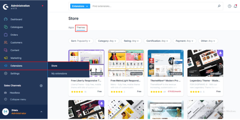 In the Shopware administration panel, go to Extensions -> Store -> Themes. Browse through the available free themes, preview them, and choose one that aligns with your brand. You can always switch to a custom theme as your business grows.