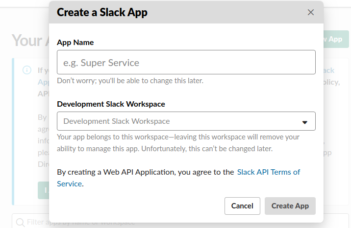 After logging into your account we need to create a Slack App. You can create new App from here (https://api.slack.com/apps)