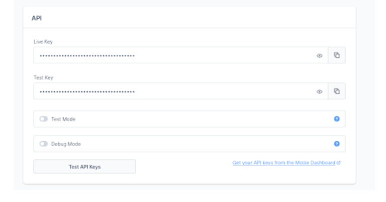 5. Enter your Mollie API keys to connect Shopware 6 to your Mollie account.